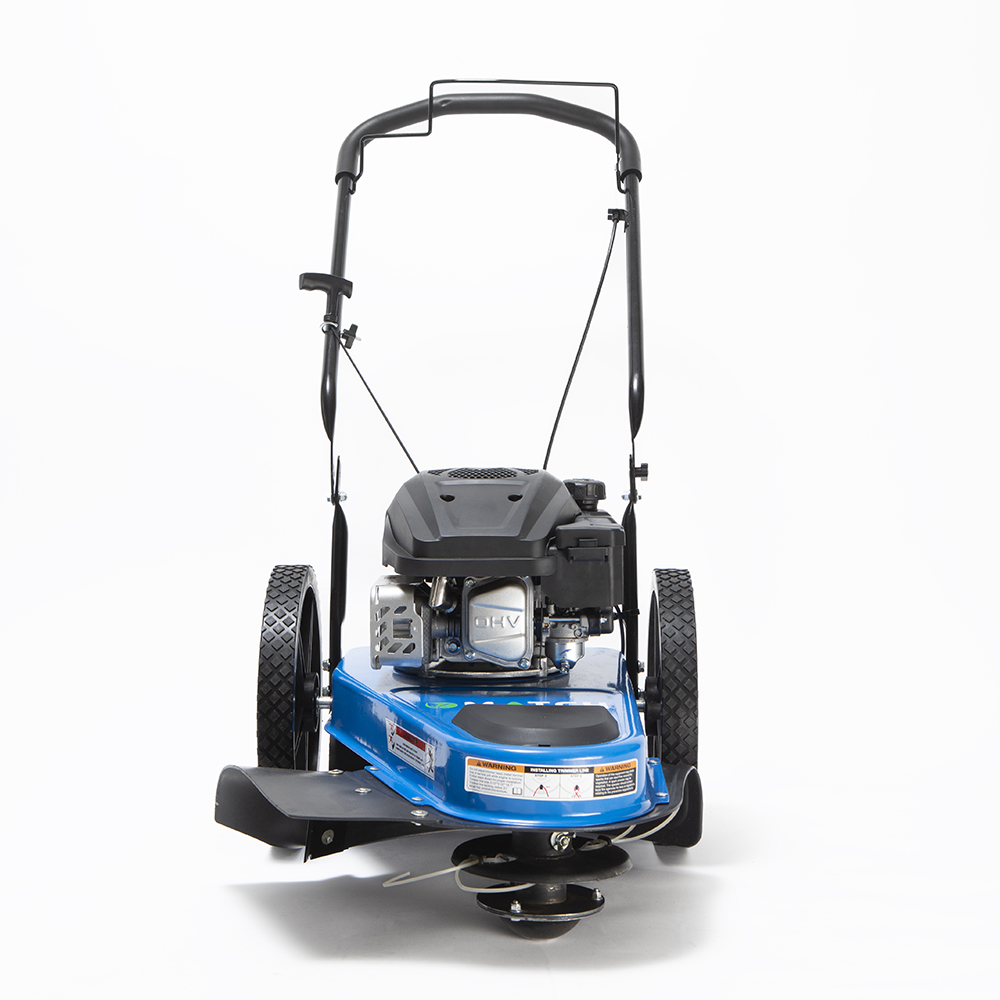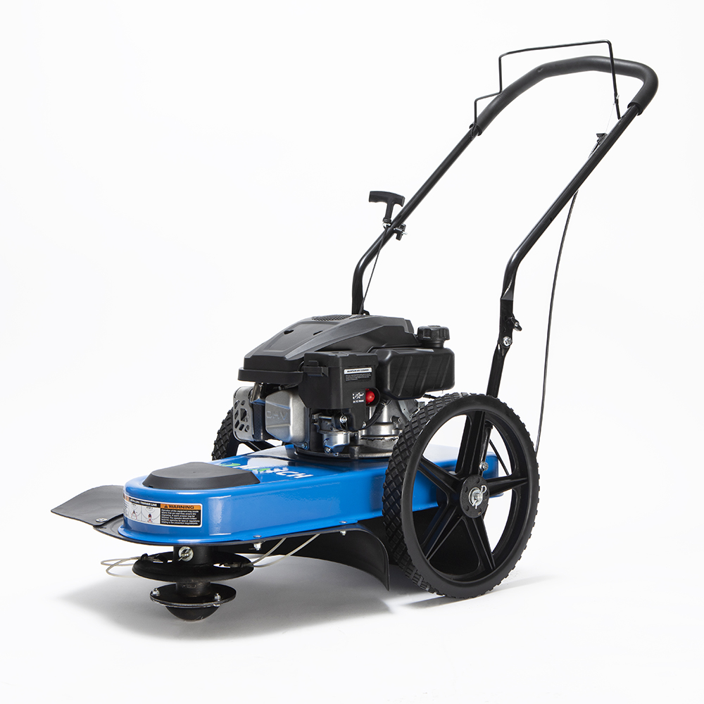 Cuenta con ruedas macizas altas (14”-35 cms.) que facilitan su maniobrabilidad por terrenos irregulares, estrechos o de difícil acceso y gran diámetro de corte (25”-64 cms.). Además, su plataforma desplazada permite recortar contra paredes y cercos mientras se avanza en línea recta.