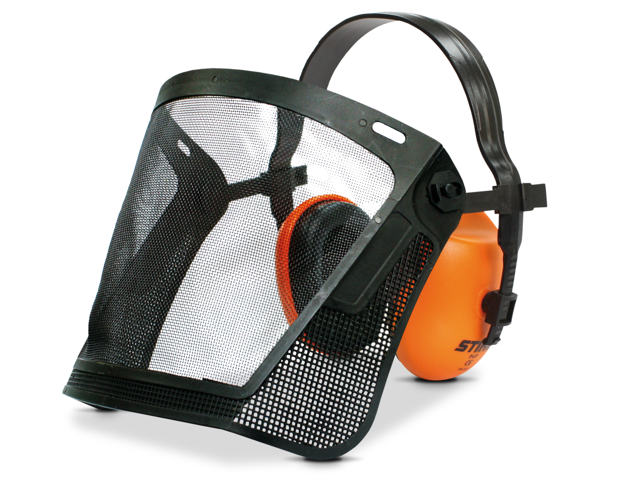 Para todo tipo de usuarios, ocasionales o profesionales de orilladoras y desmalezadoras. Pantalla con rejilla de nylon flexible, que reduce riesgo de rotura y alarga su vida útil. Combinación ligera con protectores de oido, vísera Nylon oscilante y diadema regulable.