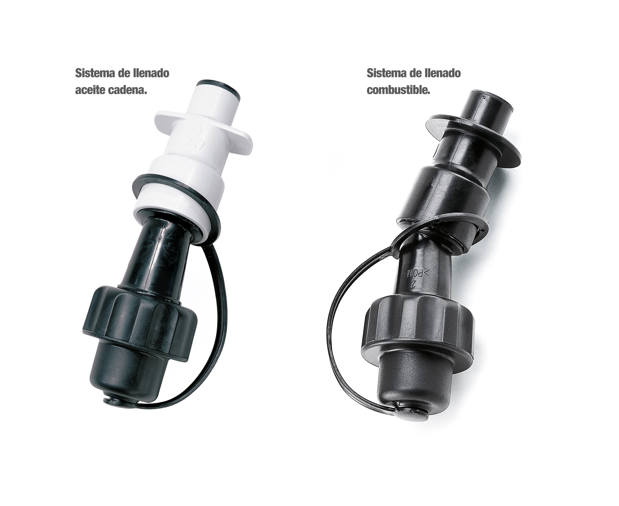 Sistema de llenado de combustible y aceite de cadena. Evitan salpicaduras y llenado excesivo. Para todas las aberturas de llenado hasta un diámetro de 23,5 mm.